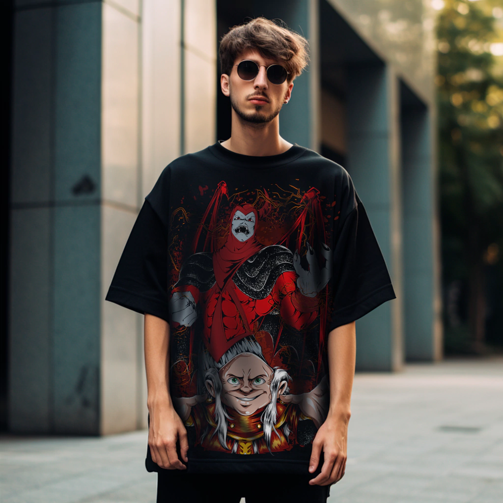 Camisa Oversized 100% algodão, estampa em DTF no tamanho A2 (gigante). Sabemos o quanto o seu personagem, série, filme ou banda predileta representa para você, sabemos o quanto ele diz sobre você, por isso nós da NBG buscamos lhe oferecer muito além do que uma simples camiseta, trabalhamos com estampas exclusivas algumas em edições limitadas, nossas peças são produzidas com tecido 100% algodão, gola redonda e acabamento diferenciado com 3 costuras, o que garante maior resistência a peça. Nossa modelagem é exclusiva e se ajusta perfeitamente ao corpo.